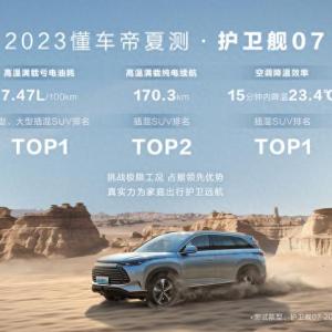 近日公布的懂车帝2023年夏季测试结果显示,“全新大五座超混SUV”护卫舰07高温满载亏电油耗在中型、大型插混SUV中排名第一,纯电续航在所有插电混动车型中排名第二,并在空调降温、防晒隔热、车内甲醛等测试中表现出 ...